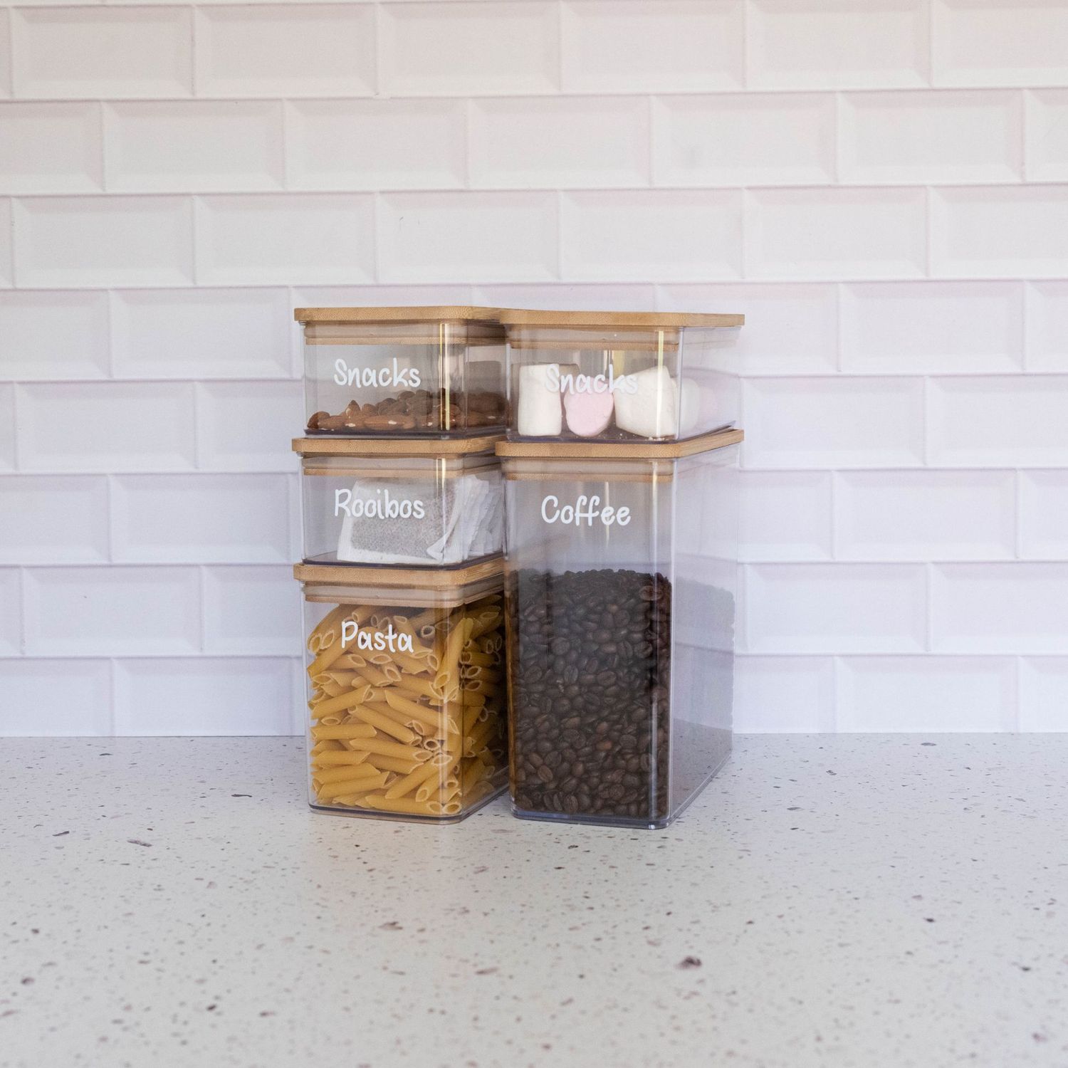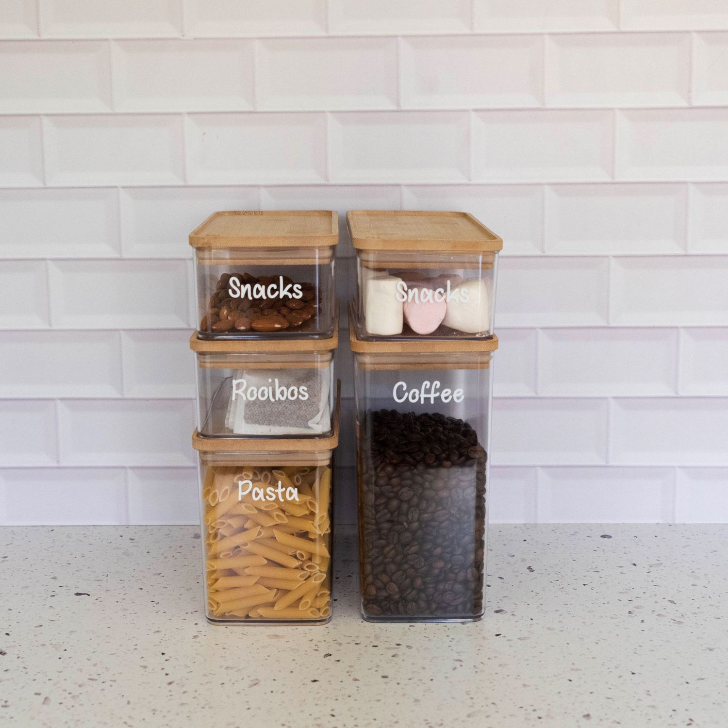 Labels and food are not included. It is just to showcase the product and show you how it may be used, and what labels can be ordered.Labels can be ordered separately. The labels shown here are called “White Chocolate Font”, 1.5cm-2cm, in the colour white.
