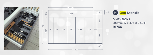 Every drawer and utensil collection is different. Customers can include their own dimensions when ordering, and the insert can be customised to fit their exact drawer size.